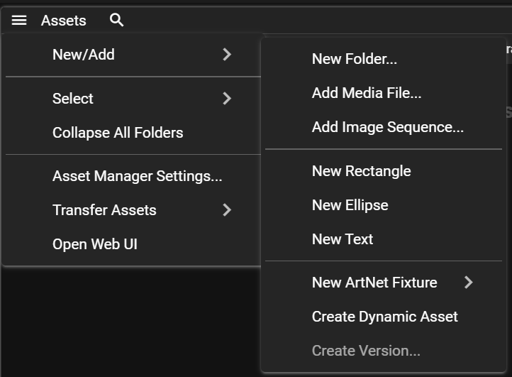 - New Rectangle / Ellipse / Text - Create a shape asset.